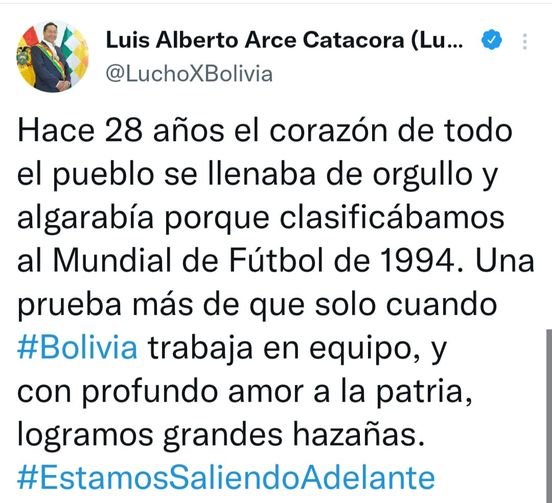 Arce recuerda clasificatoria al Mundial de Fútbol de 1994, «una prueba de que solo cuando Bolivia trabaja en equipo logra grandes hazañas»