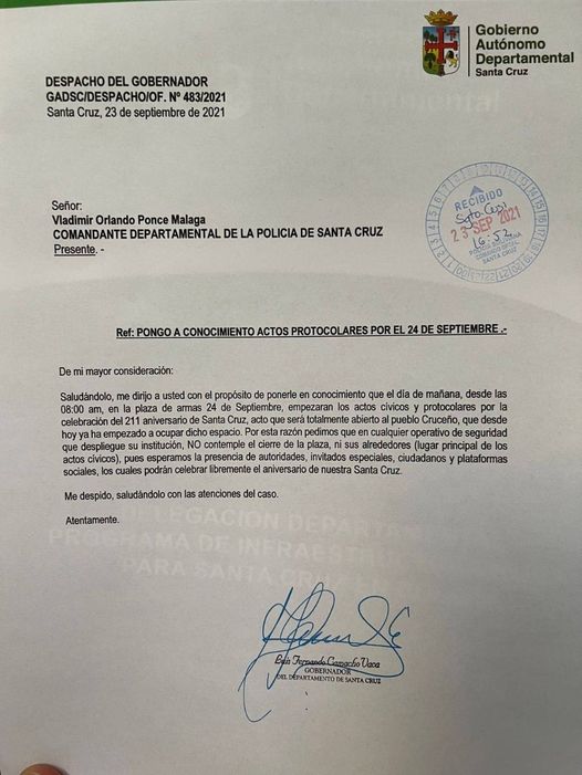 A partir de mañana a las 08:00 am empezarán los actos protocolares por la celebración de los 211 aniversario de Santa Cruz