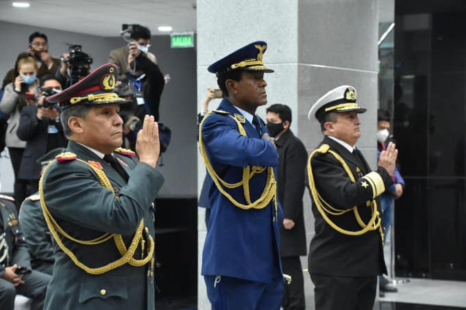 Teófilo Medina como Jefe de Estado Mayor Accidental; y al capitán Francis Enfraín Frank Salazar, Comandante general Accidental de la Armada Boliviana, las nuevas autoridades fueron posesionadas en la casa grande del pueblo.Fuente: Detrás de la Verdad