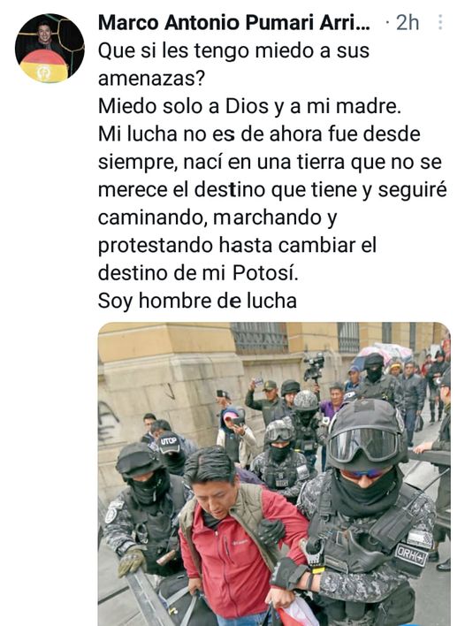 Pumari dice «no les tengo miedo, soy hombre de lucha»