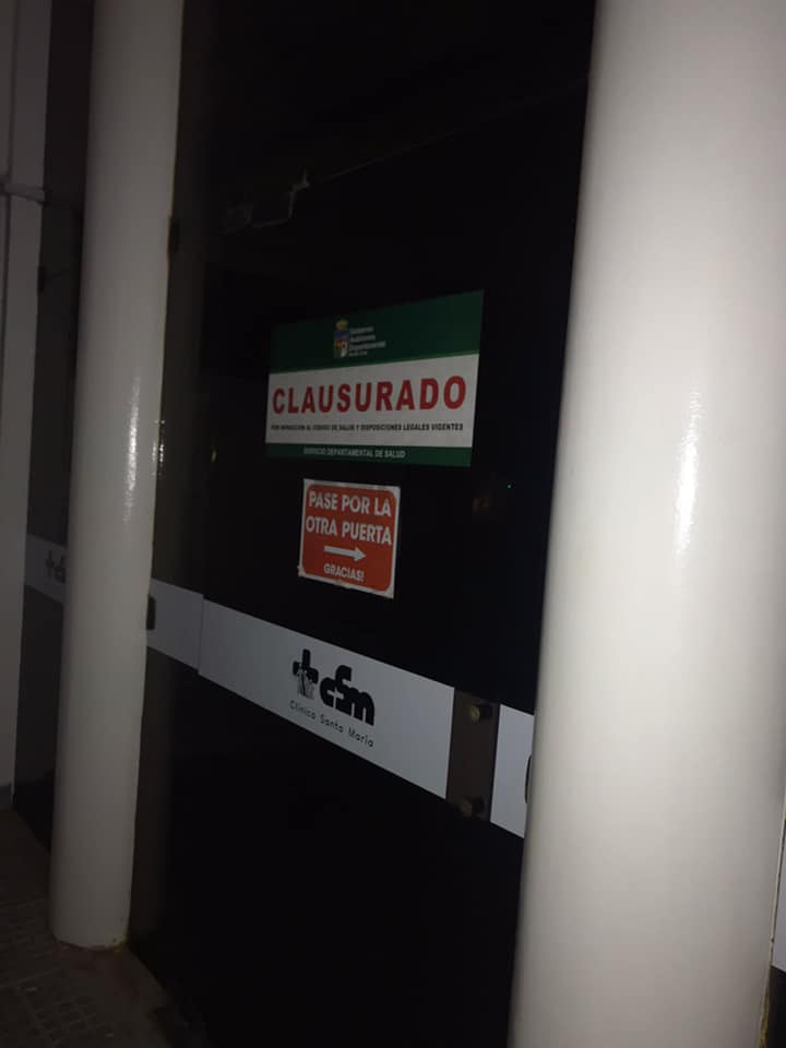 La gobernación de Santa Cruz dispuso la clausura temporal de la clínica Santa Maria porque no cuenta con la documentación solicitada por él Sedes para continuar funcionando.