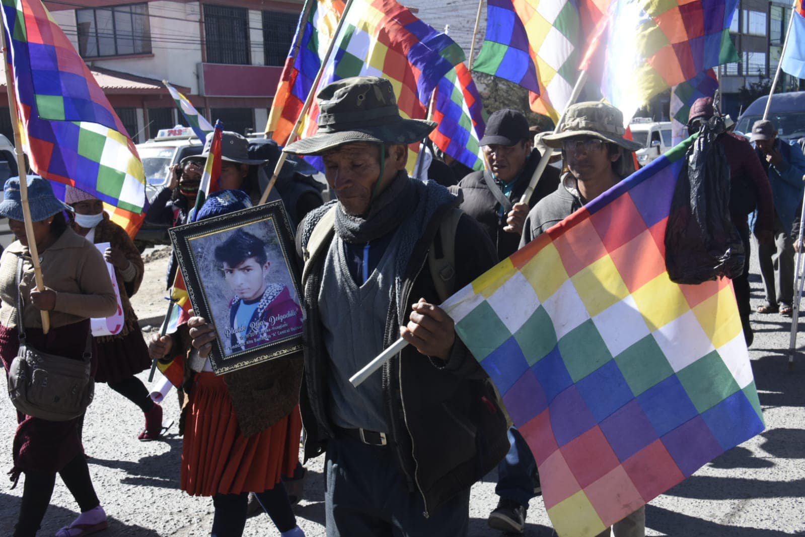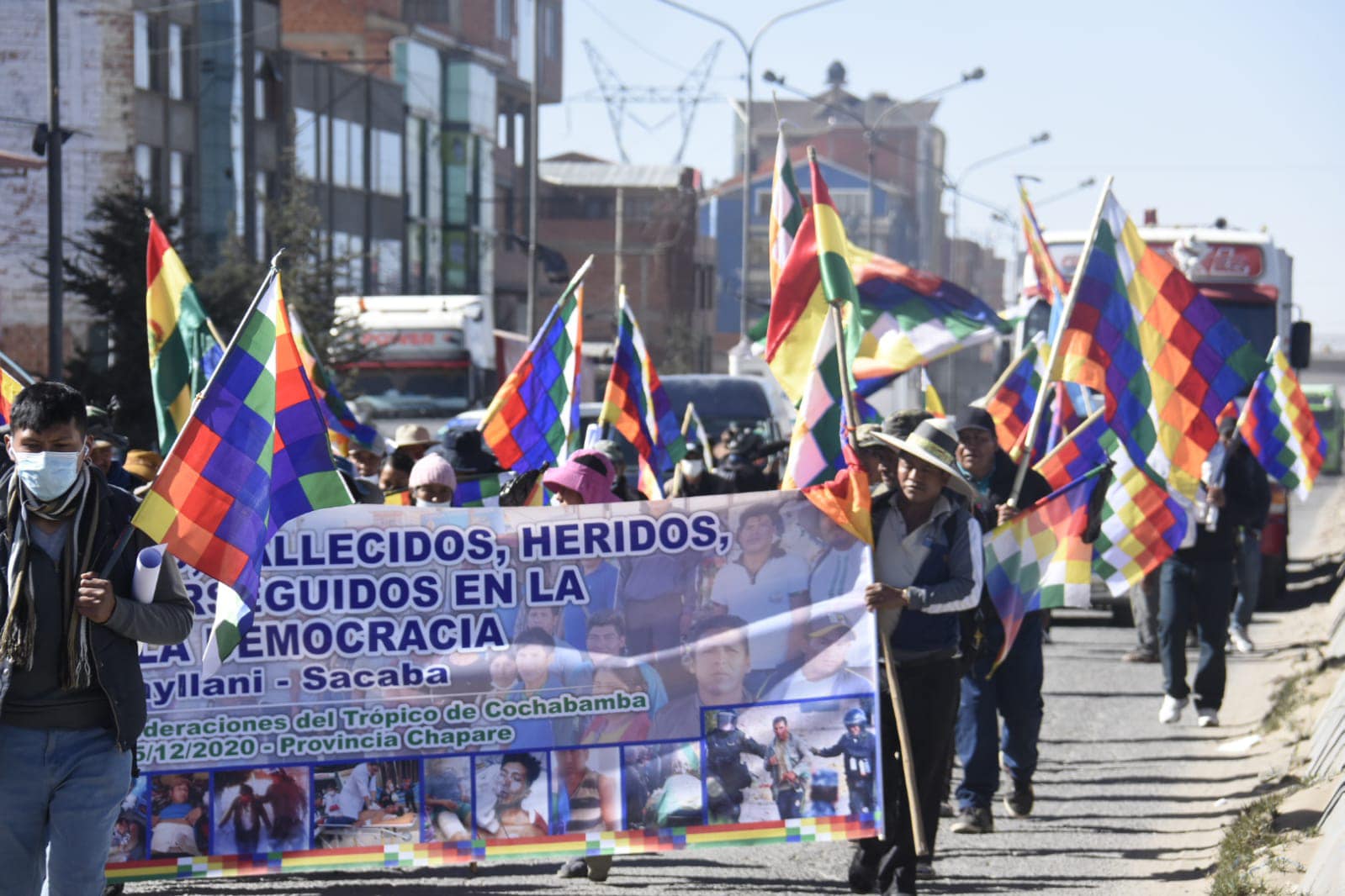 Las víctimas de las masacres de Senkata y Sacaba emprenden su último día de marcha en demanda de justicia rumbo a la Sede de Gobierno, después de caminar más de seis días desde Cochabamba.