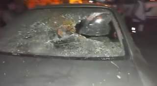Denuncian a hinchas de Blooming por destrozos a un automóvil que transitaba por la zona del Cine Center con niños en su interior.