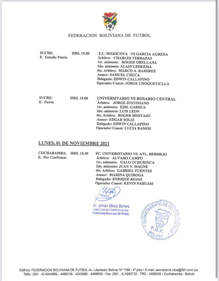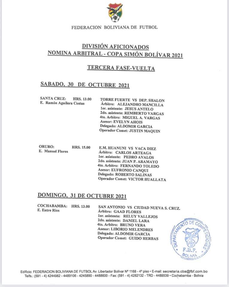 Nómina arbitral para los partidos de la copa Simón Bolívar