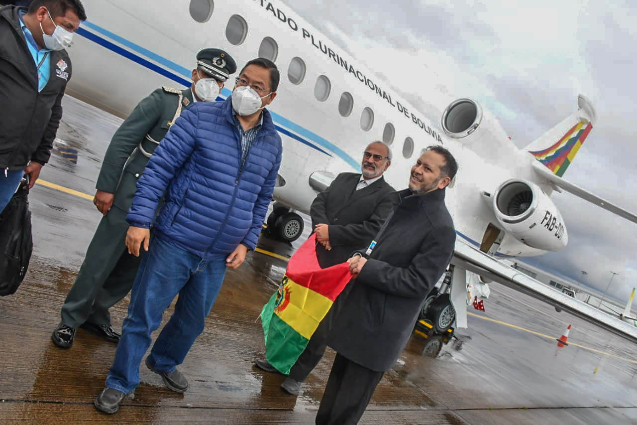 El presidente Luis Arce llegó a Glasglow, Escocia, para participar de la Cumbre Climática COP26 y agradeció a los compatriotas, al enviado especial de la Reina Isabel II y a funcionarios de la cancillería británica por la recepción.