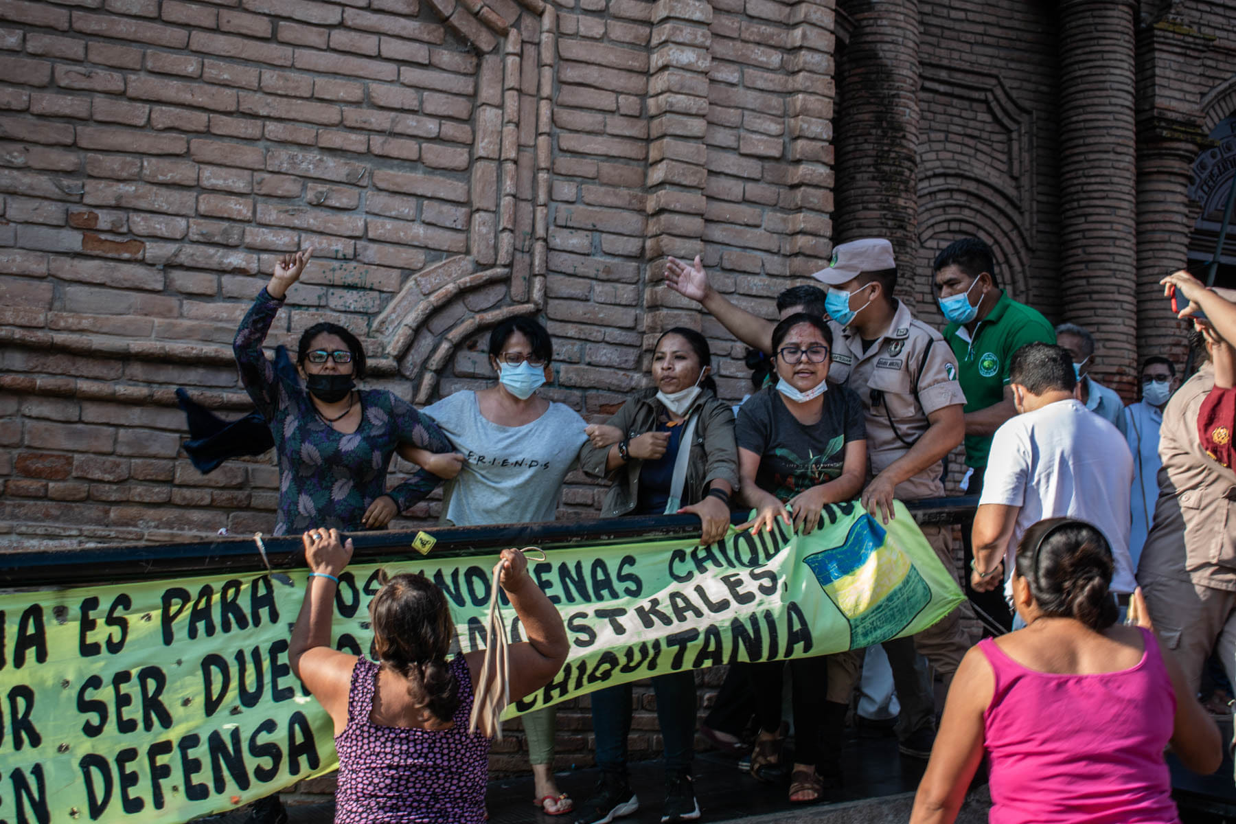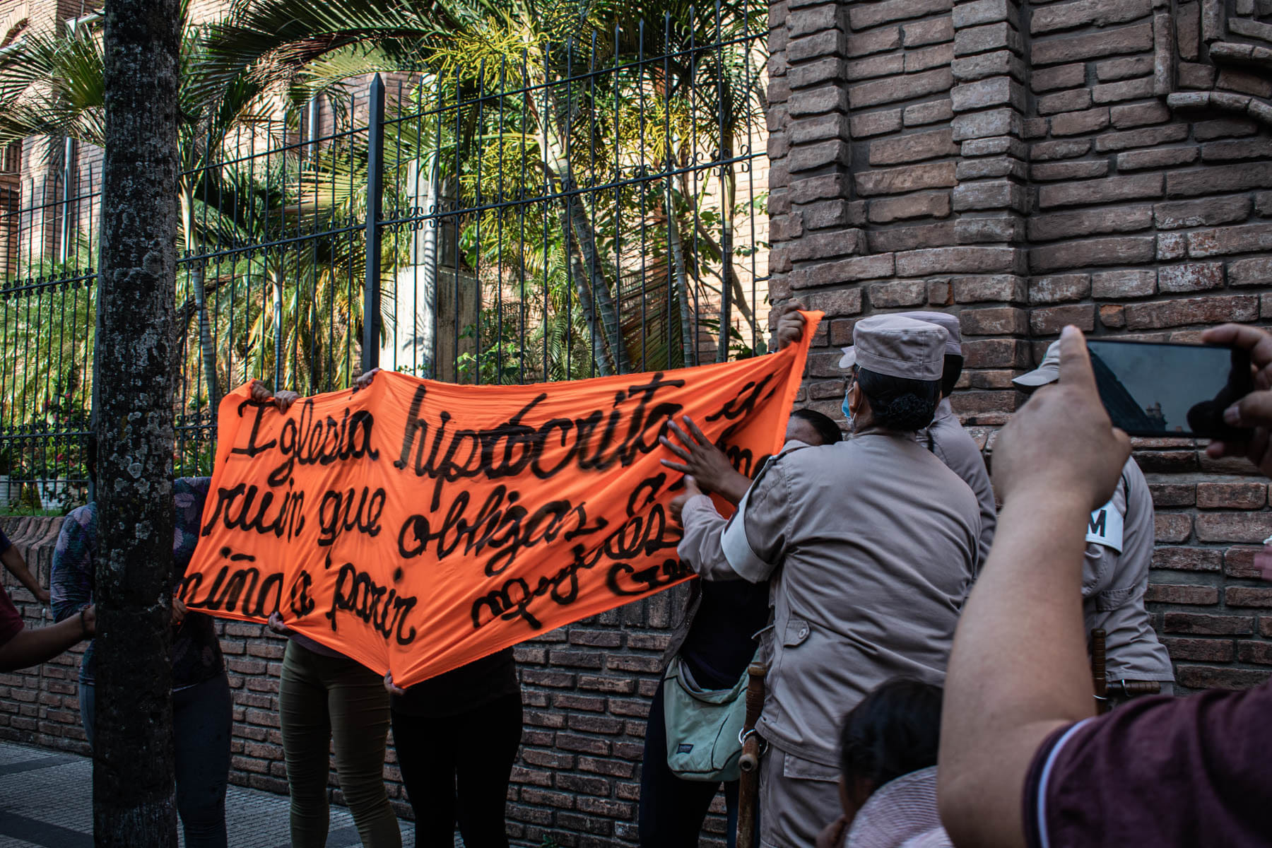 Este domingo por la mañana el colectivo Mujeres Creando irrumpió la Homilía del Monseñor Sergio Gualberti, expresando su indignación por el caso de la menor de 11 años que resultó embarazada tras ser víctima de una violación.