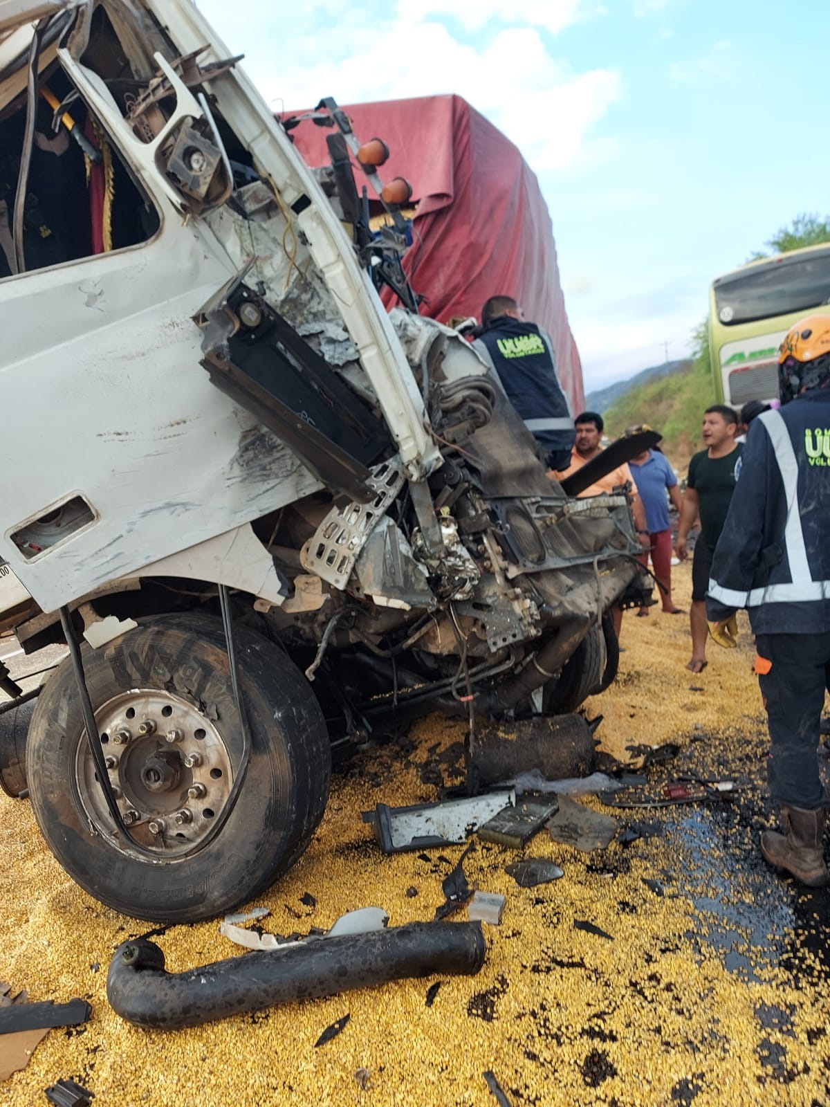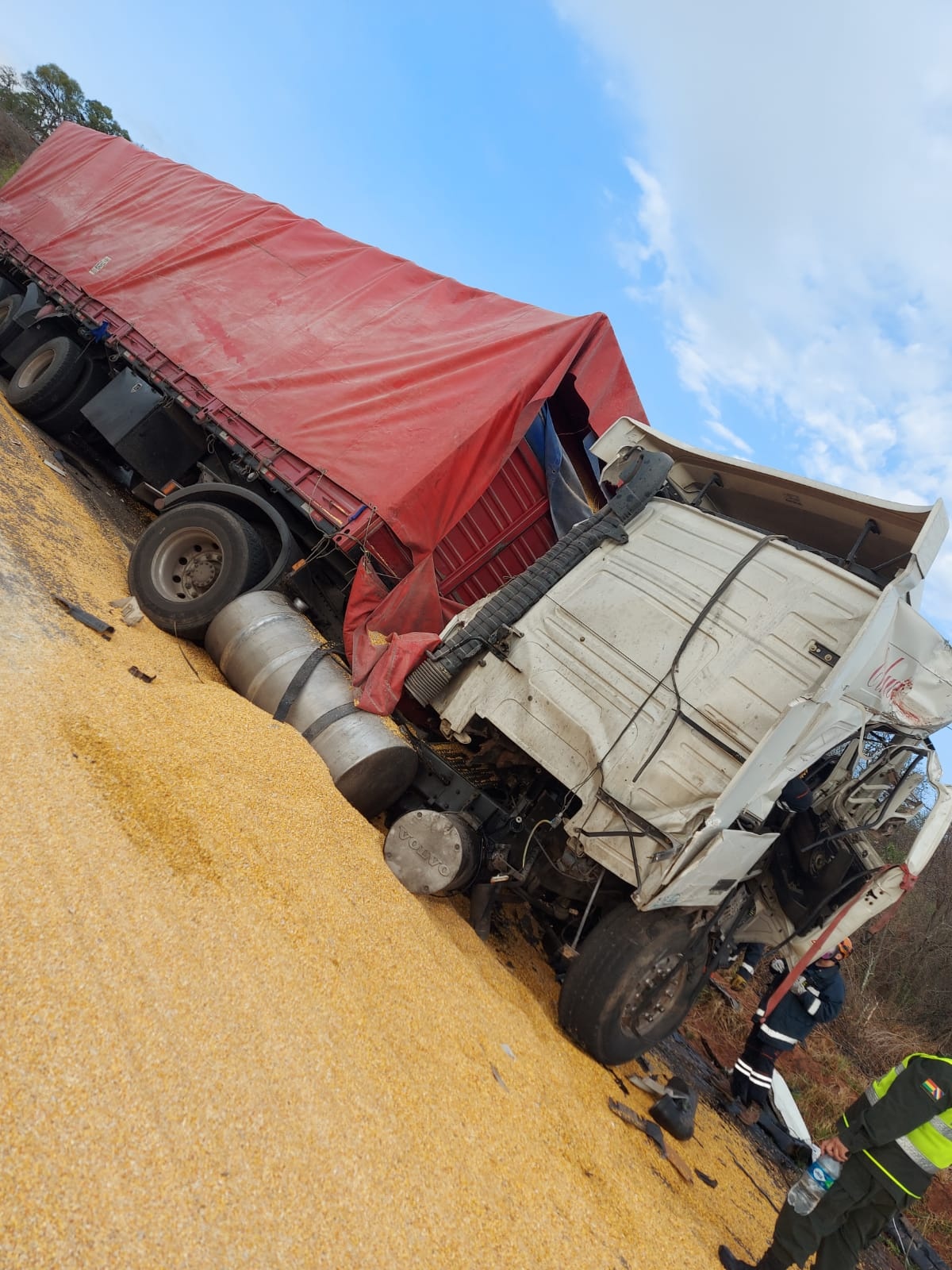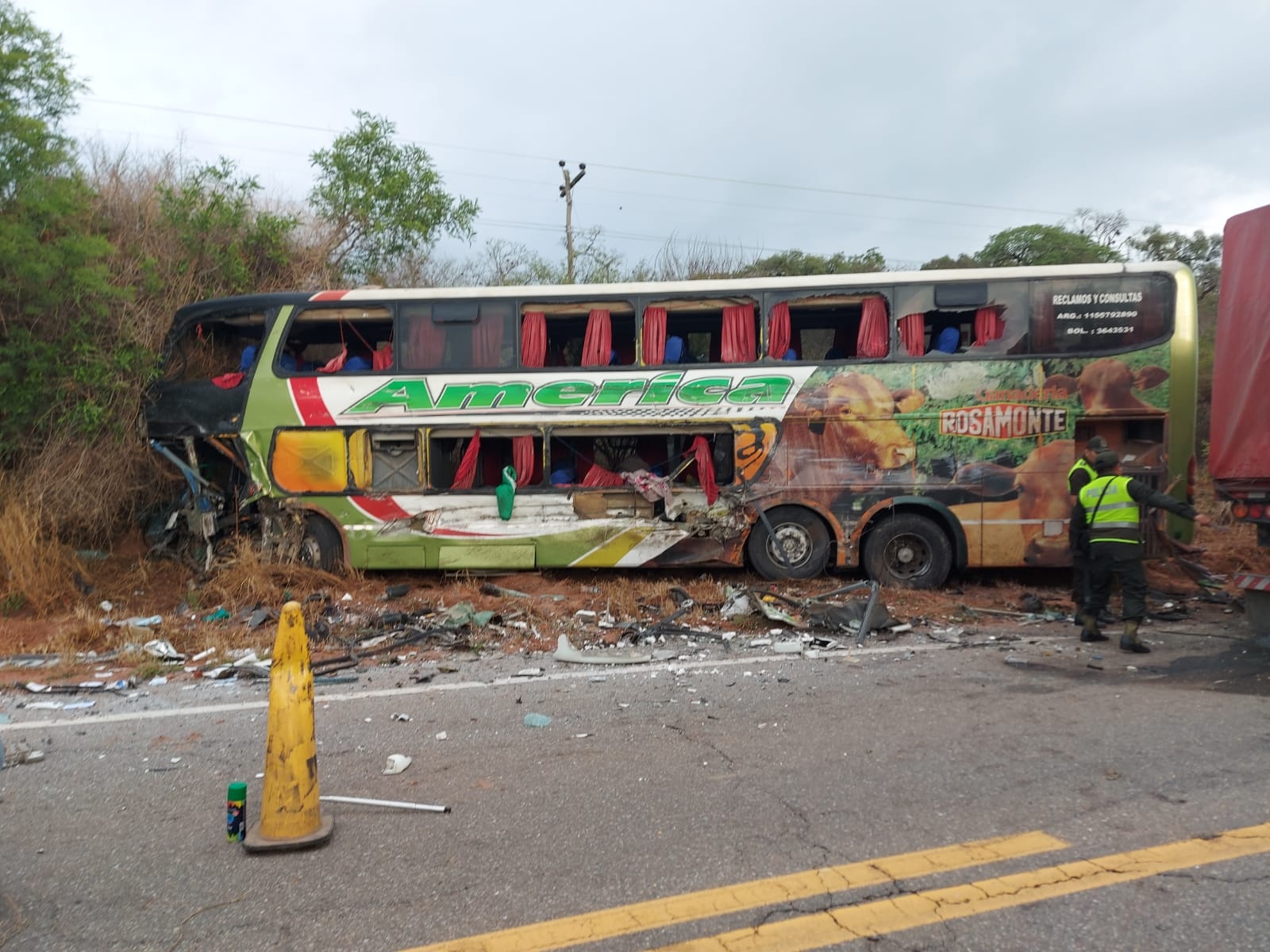 Choque en la carretera a Camiri. Un camión y un bus colisionaron dejando como resultado u…
