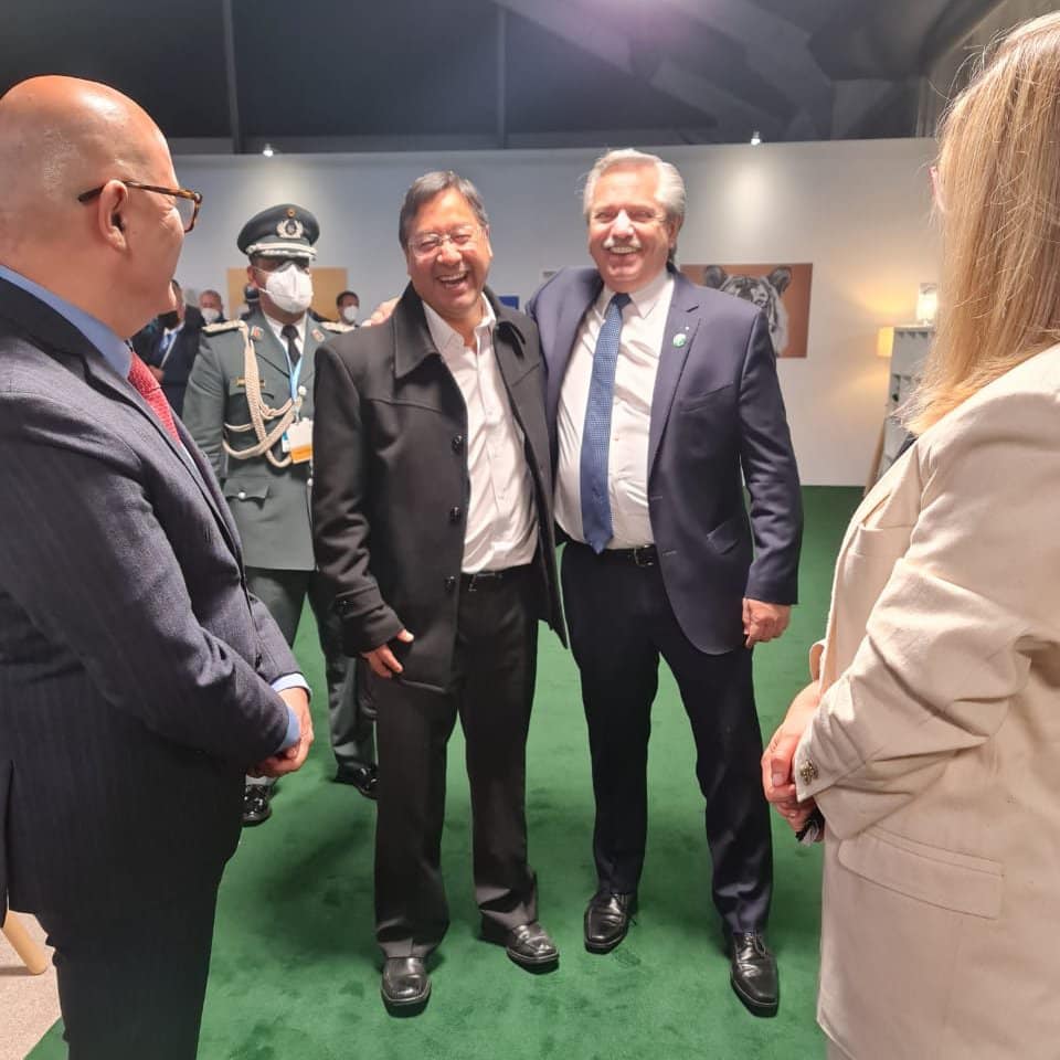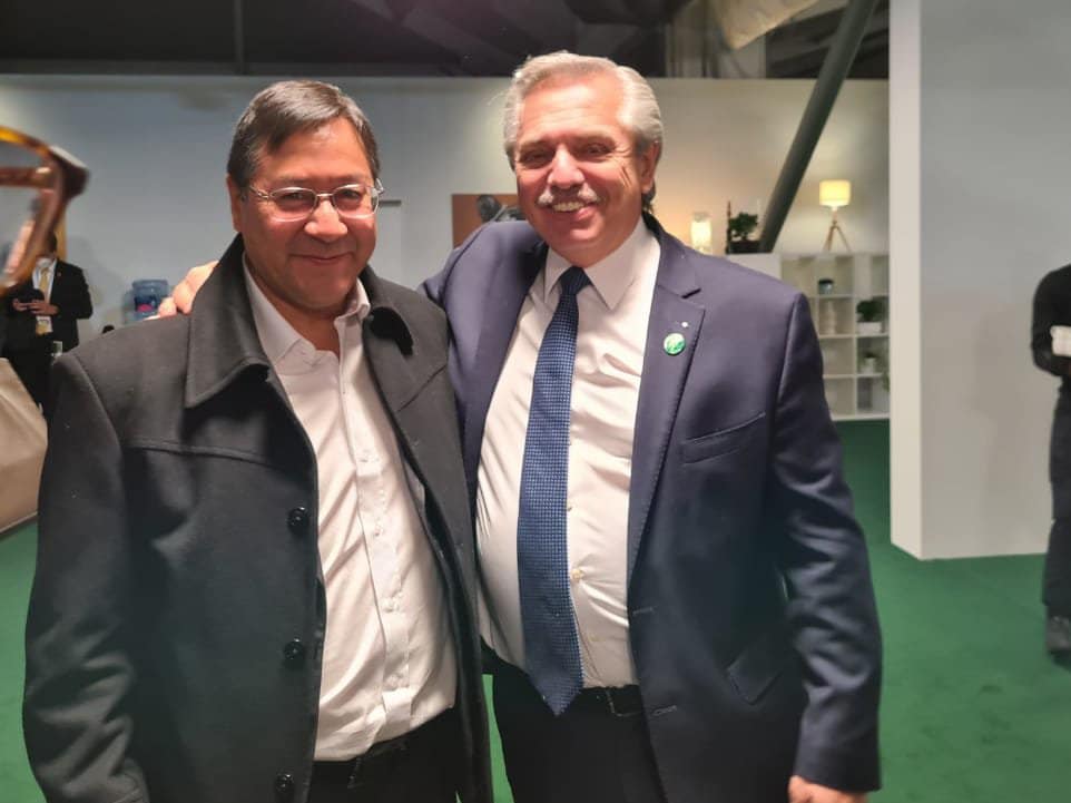 Luis Arce: “Sostuvimos un grato encuentro con nuestro hermano Presidente de Argentina, Alberto Fernández en el marco de la COP26”