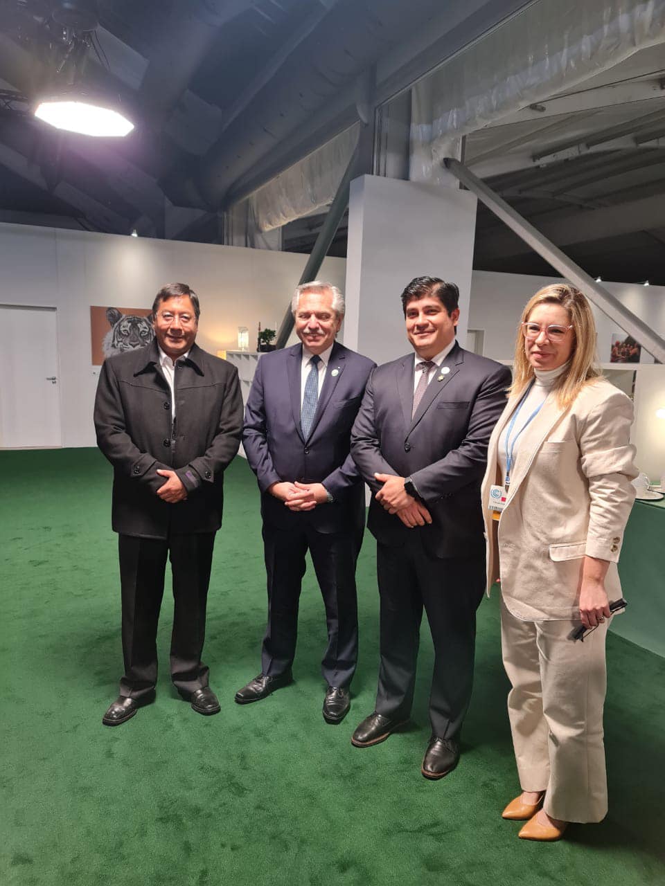 “Llevamos una misma voz a la Cumbre para luchar por los derechos de la Madre Tierra y compartimos desafíos para frenar el cambio climático”, twitteó el primer mandatario Luis Arce Catacora.