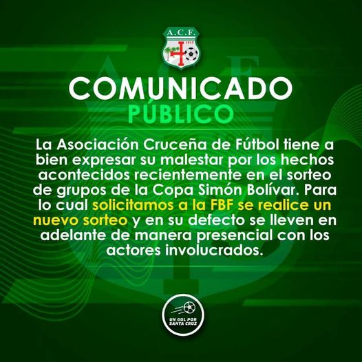 ACF pide se realice de nuevo el sorteo de la copa Simón Bolívar y sea de manera presencial