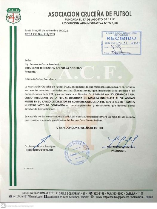 #ACF pide a la #FBF La destitución inmediata del director de competiciones Adrián MonjeCategorías DeportesEtiquetas , Facebook, Mundo Deporte 03/11/2021 #ACF pide a la #FBF La destitución inmediata del director de competiciones Adrián Monje Fuente: Mundo Deporte => Recibir por Whatsapp las noticias destacadas
