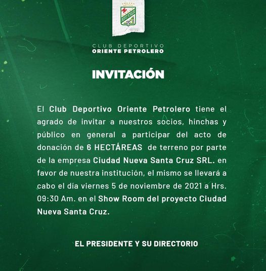 Ciudad nueva Santa Cruz donará 6 hectáreas de terreno a Oriente Petrolero