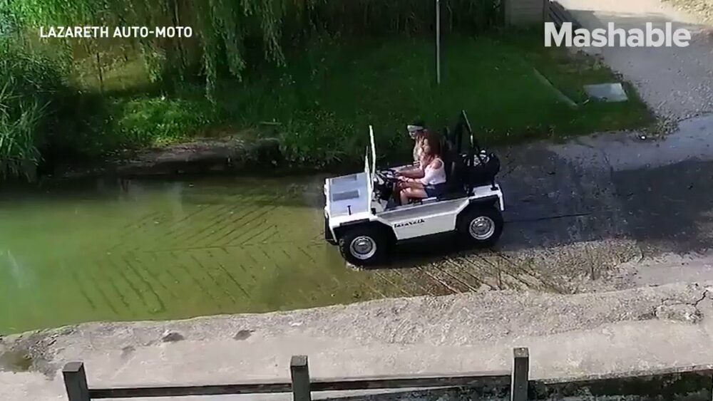 Este coche puede nadar en el agua tan bien como en tierra …