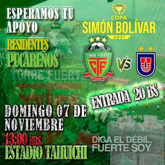 20 Bs precio de entrada para Torre Fuerte vs Universitario este domingo en el Tahuichi por copa Simón Bolívar