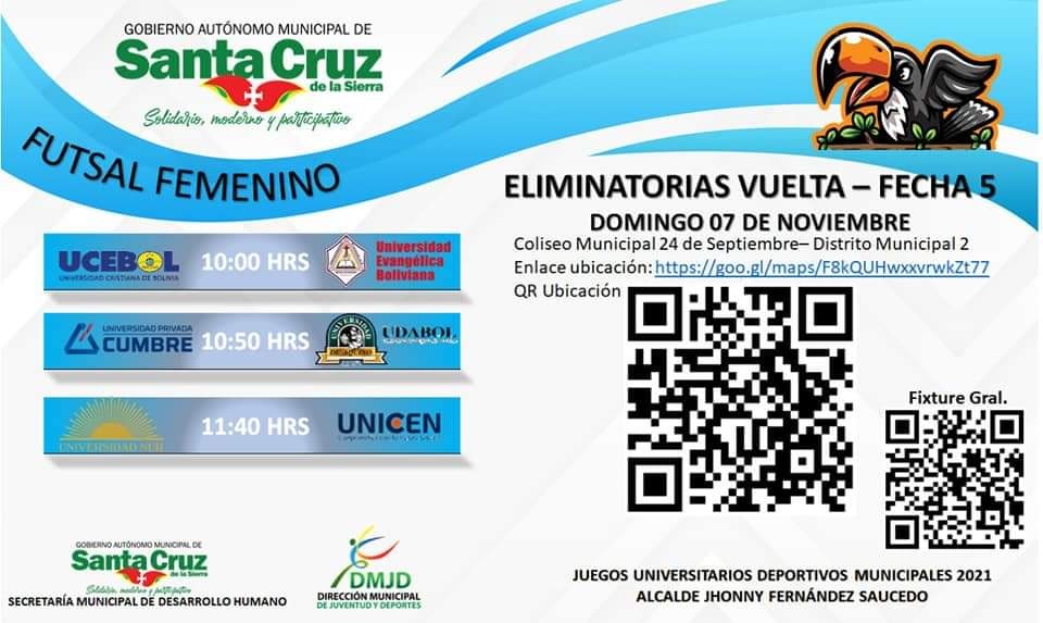 FIXTURE «JUEGOS UNIVERSITARIOS DEPORTIVOS MUNICIPALES JHONNY FERNÁNDEZ SAUCEDO» GESTIÓN 2021