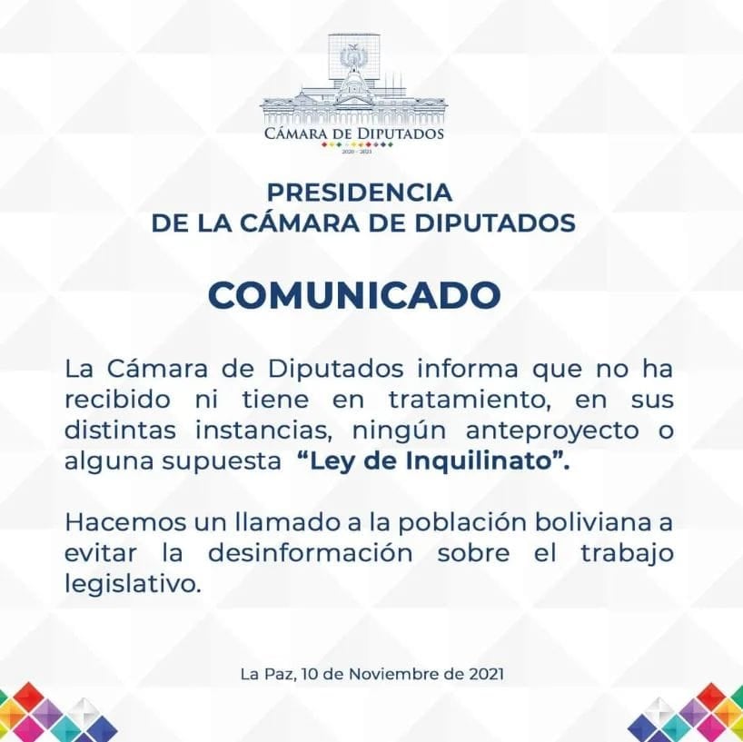 #ANF La Cámara de Diputados aclara que no tiene en tratamiento ningún anteproyecto o ley de inquilinato. https://t.co/LpoItbXrrF