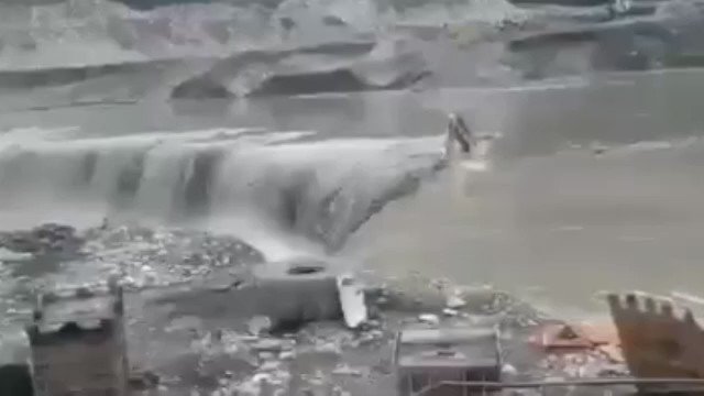 #ANF La fuerza del caudal del río Mapiri arrastró una maquinaria pesada y todo lo que está a su paso.