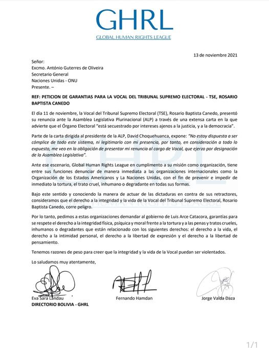 Que demande a la dictadura de Luis Arce @LuchoXBolivia, no violar los #DDHH de la Vocal Rosario Baptista después de su denuncia y renuncia al TSE. @ONU_es @ONUBolivia @Almagro_OEA2015 @OEA_oficial @CIDH https://t.co/rVwACTjG5K