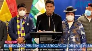 El presidente del Senado, Andrónico Rodríguez, anunció la aprobación del proyecto de ley que abroga la Ley 1386