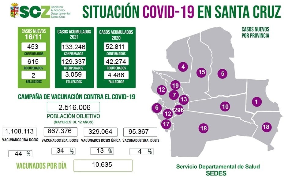 #ANF El Sedes de #SantaCruz reportó este martes 453 nuevos contagios, 615 recuperados y 2 fallecidos por COVID-19 pic.twitter.com/zL62jlxZyr