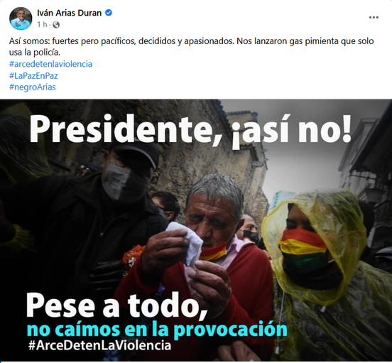 Arias le pide a Arce detener la violencia en el país