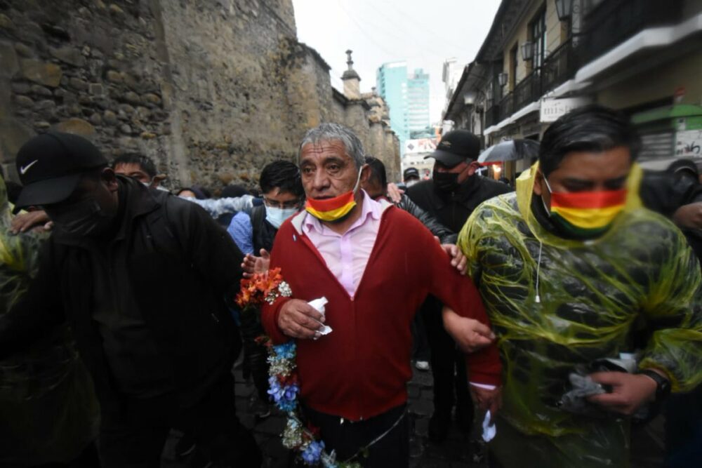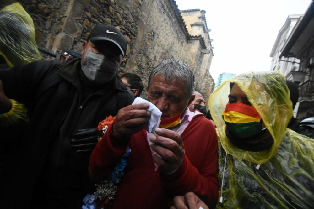 #ANF El alcalde Iván Arias denunció que grupos de choque del MAS le lanzaron gas pimienta a su rostro y a otras personas que marchaban junto a él a la altura de la calle Sagárnaga, cuando lideraba la masiva “Gran marcha de la paceñidad” por el centro paceño.