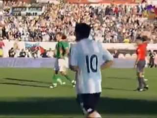 Estadio Monumental, 17 de noviembre de 2007. Argentina le ganó 3 a 0 a Bolivia y Juan Román Riquelme convirtió sus últimos goles con la Selección. El primero de tiro libre, el segundo con asistencia de Messi.