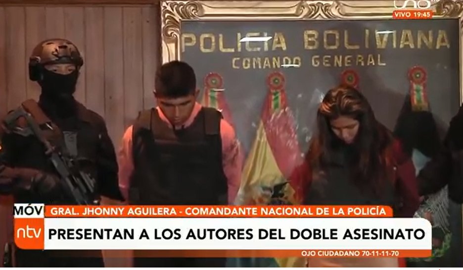 #Ultimo La Policía presenta al autor y la cómplice del asesinato de un hombre y su hija de 10 años en #ElAlto.