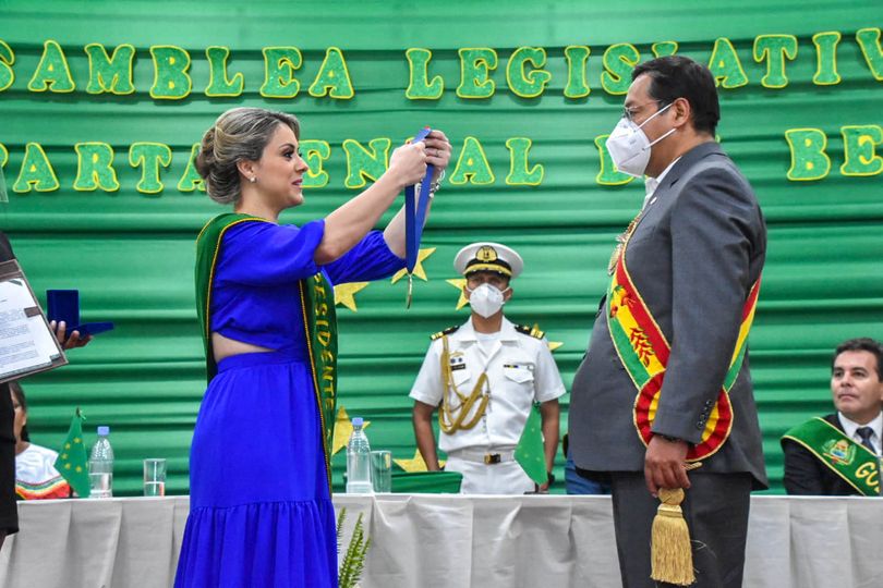 En #Beni entregan al presidente Arce la medalla de oro “Pedro Ignacio Muiba”.