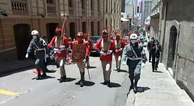 #Ultimo Los Colorados de #Bolivia marchan rumbo a la plaza Murillo de #LaPaz para conmemorar el Día del Himno Nacional. (Video: Ahora el Pueblo) pic.twitter.com/KT88w5ZMV3