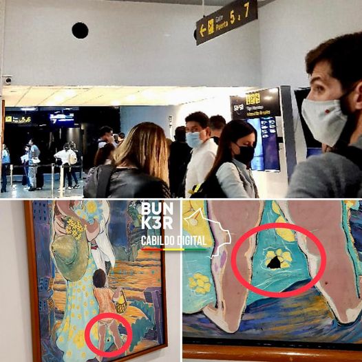 La denunciante nos envió el mensaje señalando, “ Una barbaridad que una obra de arte de este nivel la tengan en un aeropuerto con cero protección y cuidado. Ya esta dañada la obra de Herminio Pedraza.”