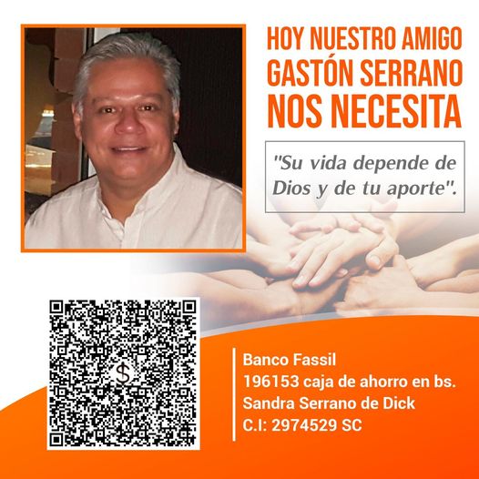 Gaston Serrano ha estado y ayudado a tantos en Santa Cruz. Hoy el necesita de nuestra ayuda. Por favor ayudemos con lo que podamos. Si no podes, al menos REENVIAR este mensaje.