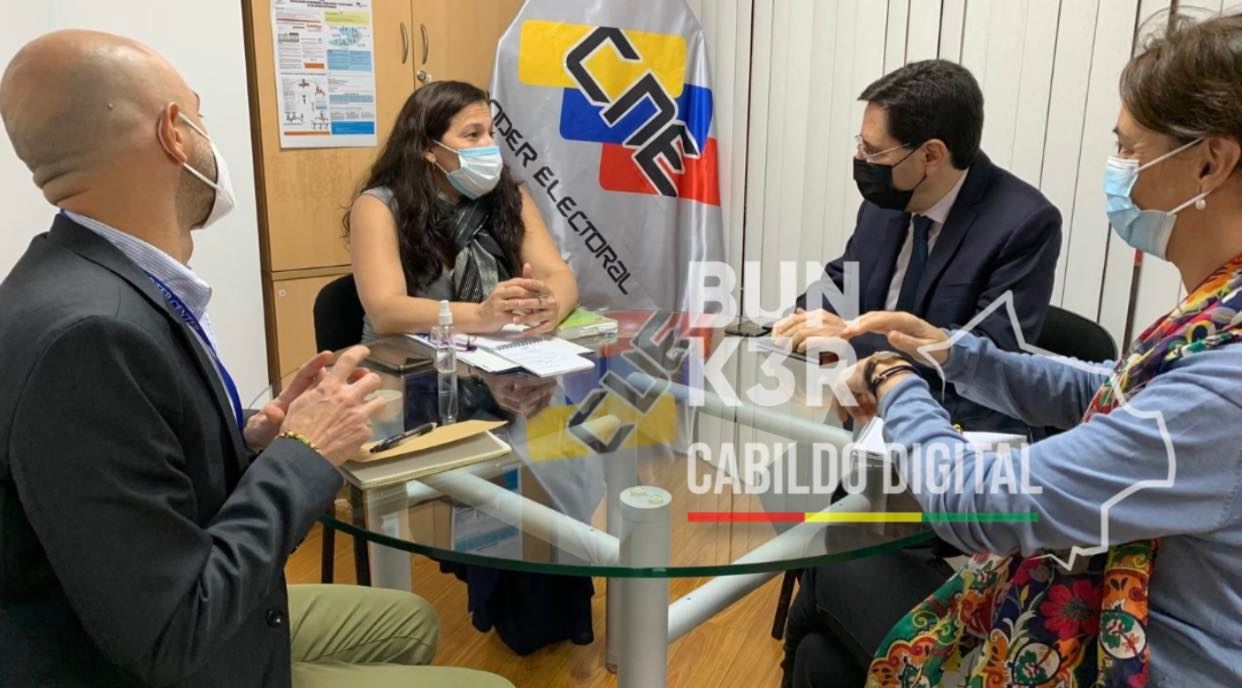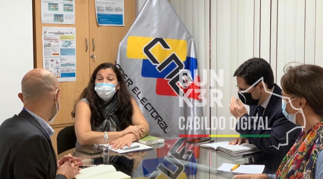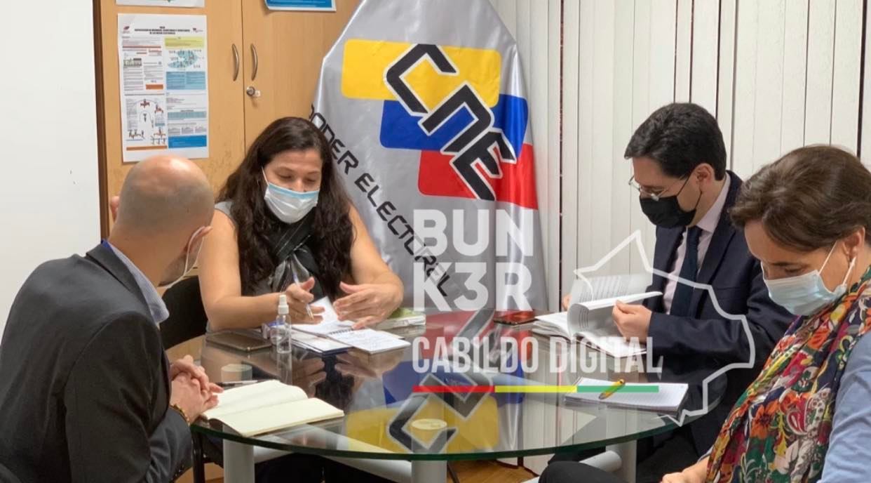 “En estos momentos nos encontramos reunidos con los representantes del Centro Carter, Andrea Nelli, Salvador Romero y Mercê Castells”, explicó la rectora principal del CNE, Tania D´Amelio, en un mensaje de su cuenta en Twitter.