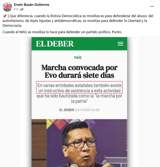 Diputado Bazán:»Cuando el MAS se moviliza lo hace para defender un partido político»