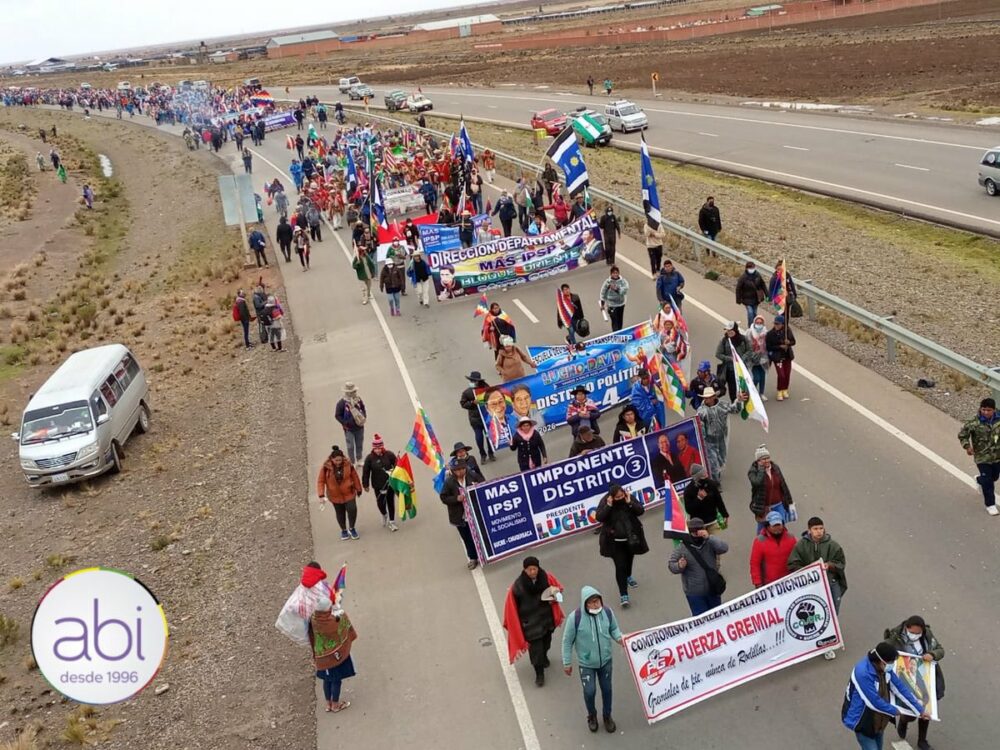 #ANF La marcha de organizaciones sociales afines al MAS cumple hoy su cuarto día de caminata rumbo a #LaPaz en defensa del gobierno de @LuchoXBolivia. Esta jornada partió desde la localidad de Patacamaya. (Fotos: ABI) pic.twitter.com/U84zGx6NZy
