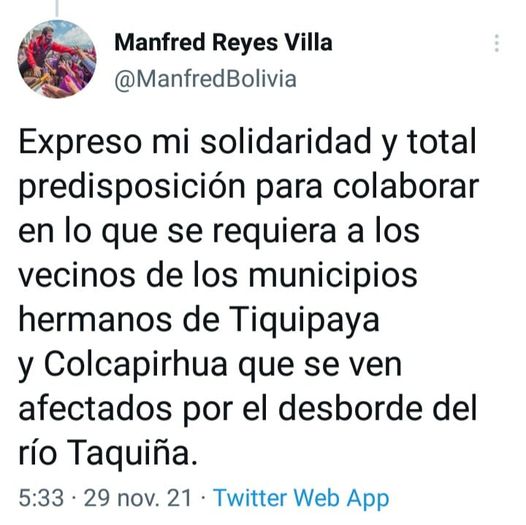 Alcalde de #Cochabamba expresa su solidaridad a familias afectadas por desborde del río Taquiña