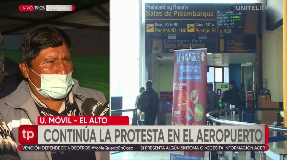 #ANF Trabajadores de exAASANA continúan movilizados en el Aeropuerto Internacional de El Alto. Anuncian que instalarán piquetes de huelga de hambre con sus familias.