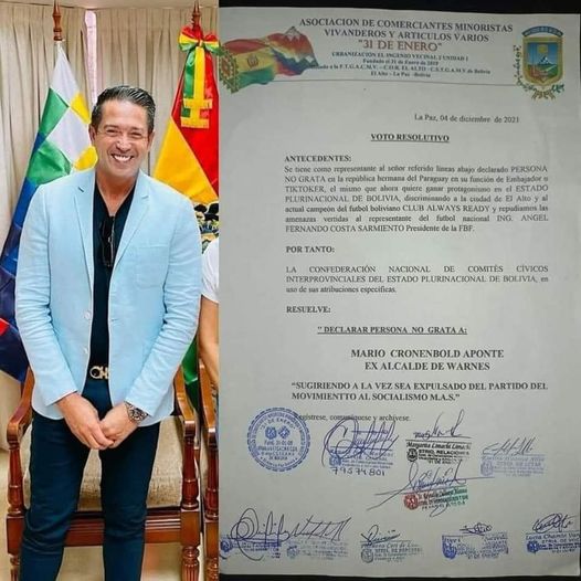 La molestia surgió por declaraciones del ex diplomático y ex alcalde de Warnes en un contexto futbolitico donde crítico duramente el mal arbitraje del partido entre Blooming Vs. Always Ready.