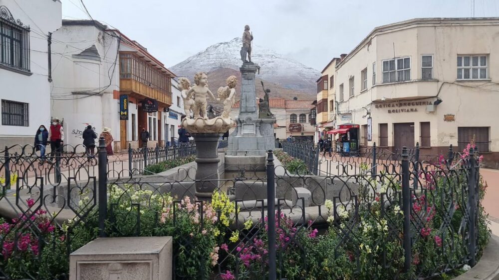 Así amaneció hoy la ciudad de Potosí. Un manto blanco cubre el famoso Cerro…
