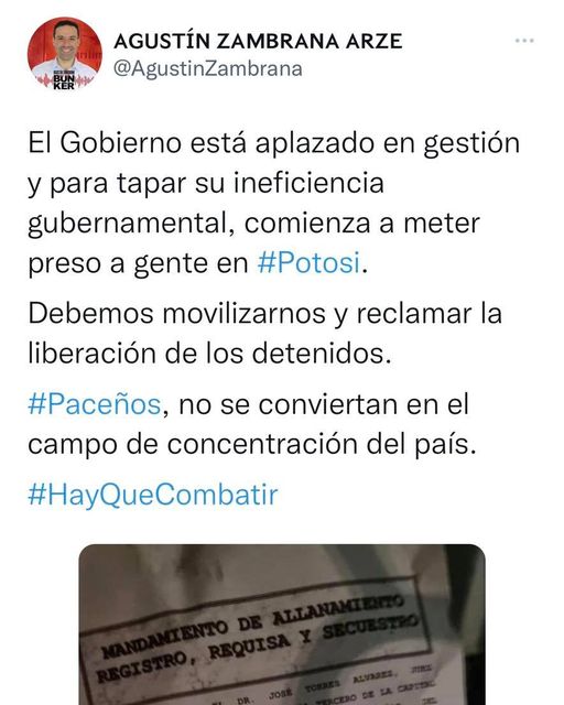 El pueblo unido jamás será vencido!Categorías NoticiasEtiquetas , Agustín Zambrana en El Bunker, Facebook 10/12/2021 El pueblo unido jamás será vencido! Fuente: Agustín Zambrana en El Bunker => Recibir por Whatsapp las noticias destacadas