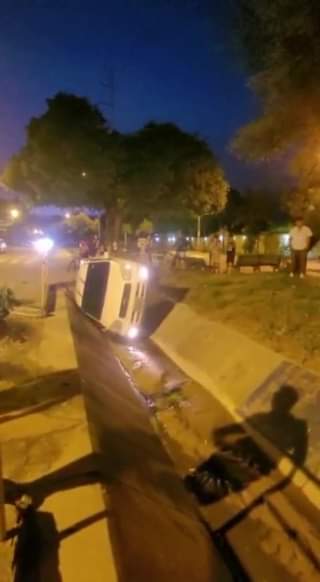 Vehículo termina dentro de un canal de drenaje.