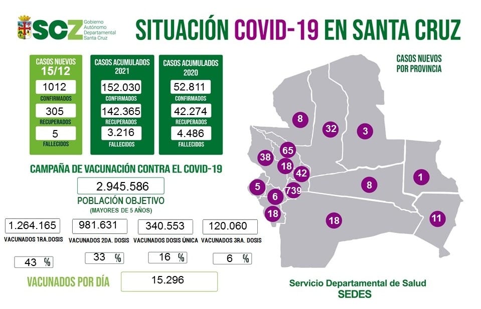 #ANF #SantaCruz suma 1.012 nuevos contagios, 305 recuperados y 5 fallecidos, según el reporte del Sedes. pic.twitter.com/68KMKpTsGI