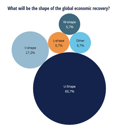 65% de los encuestados en este último trimestre piensa que la recuperación tendrá forma de U. Otros en L, V y W.