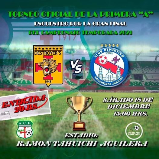 Se define al campeón de la temporada 2021 de la Primera A. Destroyers y Argentinos Juniors se enfrentarán desde las 15:00 de este sábado en el Tahuichi.
