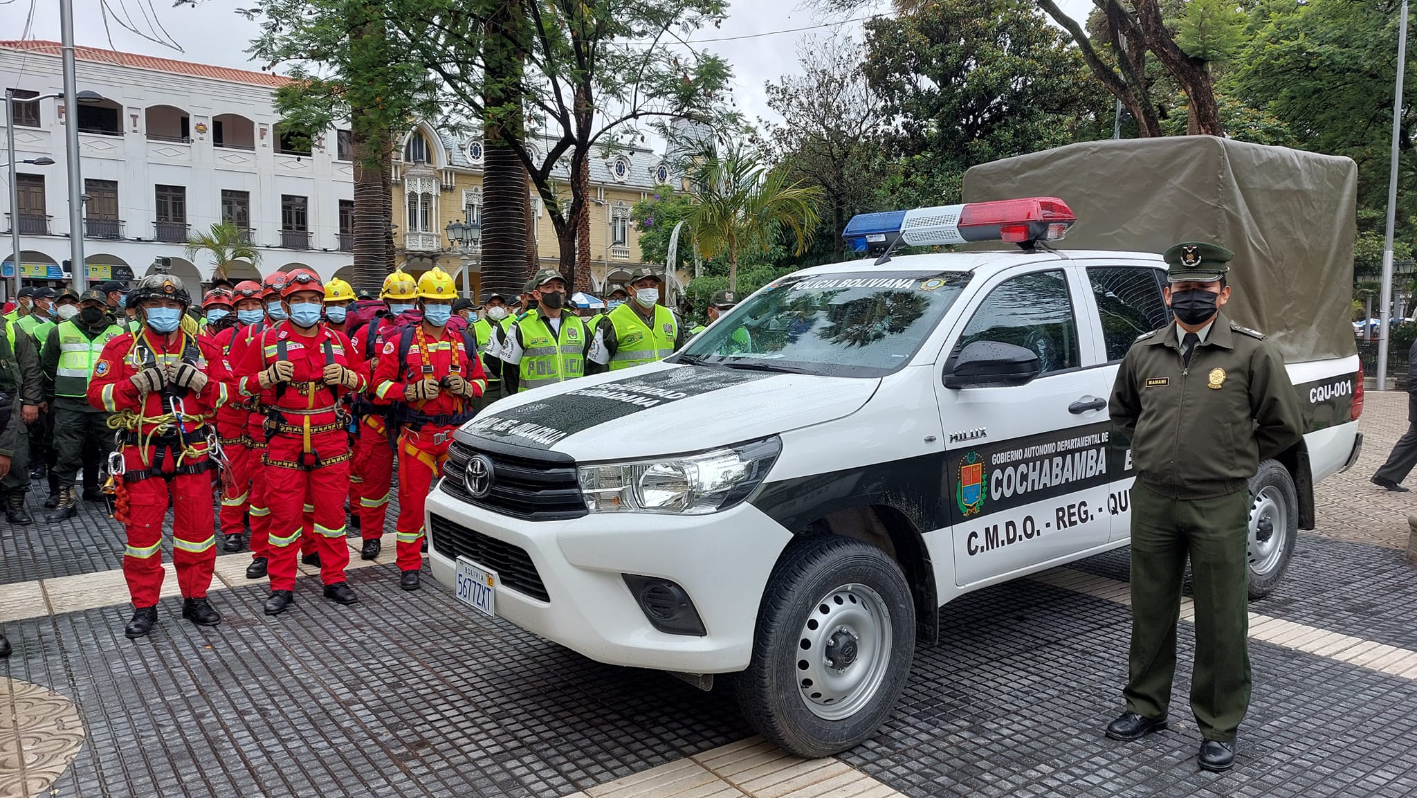 Gobernador Humberto Sánchez entregó movilidades, equipamiento e insumos a la #PolicíaBoliviana para fortalecer el trabajo de la seguridad ciudadana.