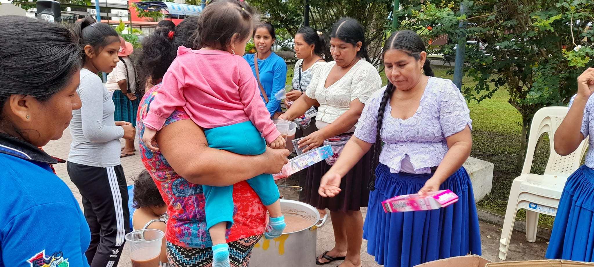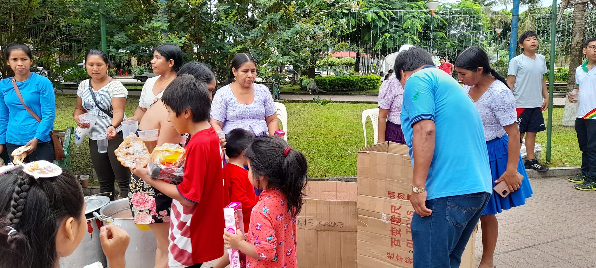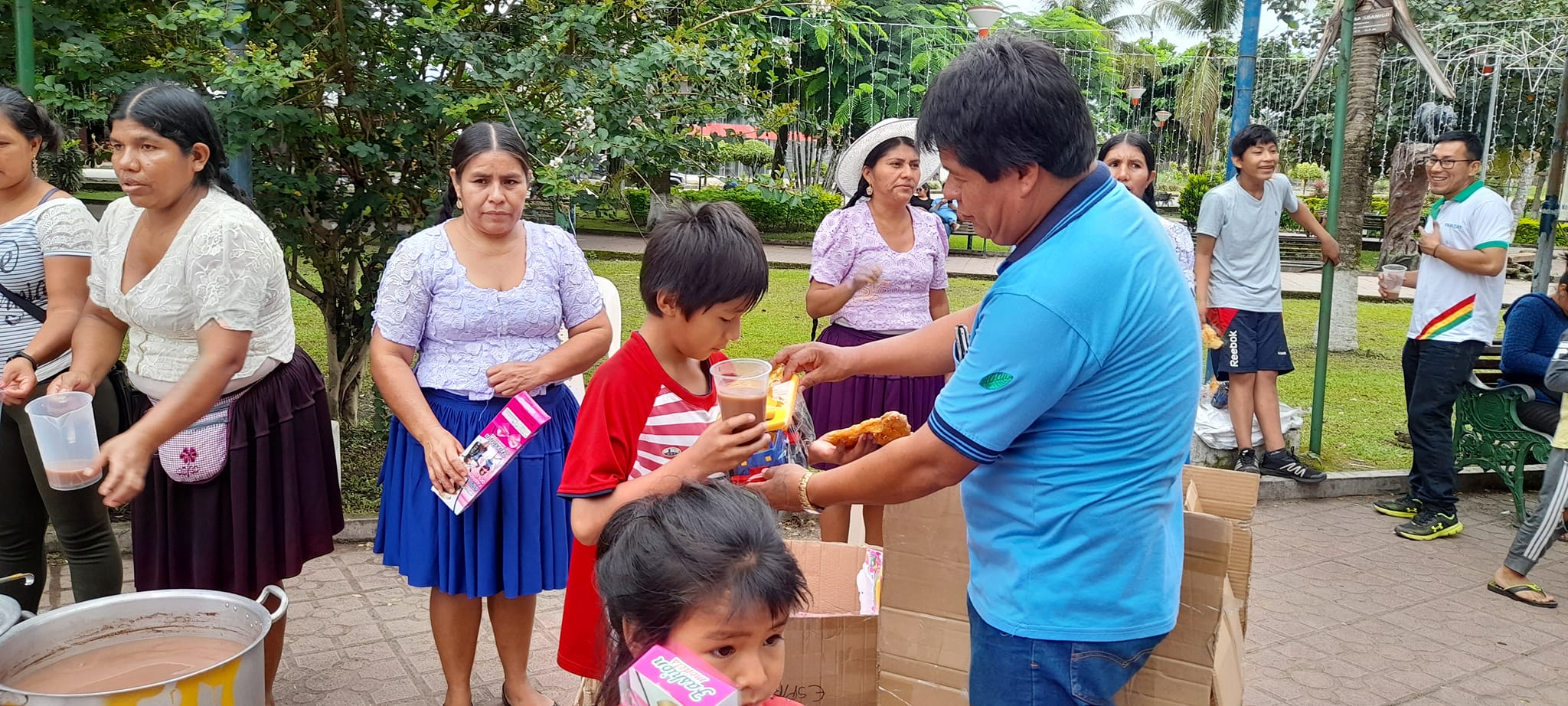 Alcaldesa Segundina Orellana y concejales hacen entrega de regalos y chocolatada a los niños de Villa Tunari por la fiesta de la Navidad.