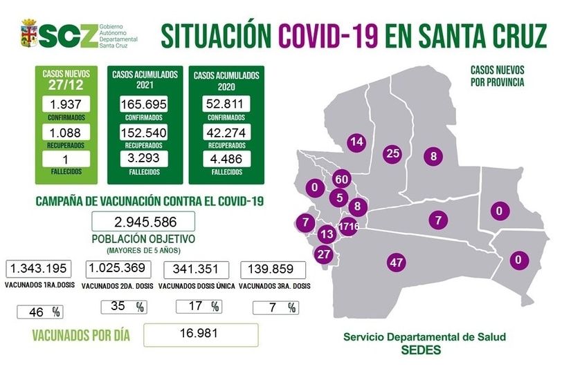 Récords de contagios en Santa Cruz.Categorías NoticiasEtiquetas , Facebook, Periodismo Somos Todos 27/12/2021 Récords de contagios en Santa Cruz. Fuente: Periodismo Somos Todos => Recibir por Whatsapp las noticias destacadas