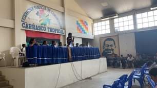 #RkcEnVivo Evo Morales, presidente de la coordinadora de las seis federaciones del trópico participa en ampliado de la federación de mujeres Carrasco tropical.