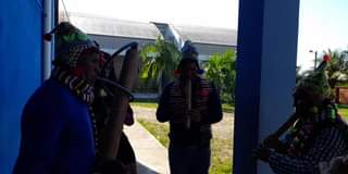 Con música de San Pedro de Macha, una delegación de este municipio a la cabeza del Alcalde Agustín Irasabal, aguarda una reunión de coordinación con el hermano Evo Morales.
