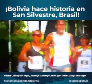 Felicitamos también a nuestras atletas Jhoselyn Camargo de LaPaz y Sofía Luizaga de Oruro, quienes obtuvieron el séptimo y noveno lugar, respectivamente, en la Carrera de San Silvestre, #Brasil.